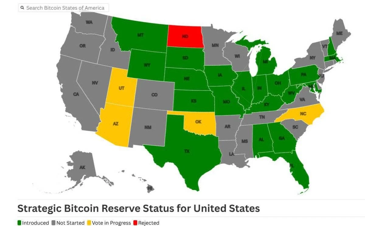 超过 22 个美国州已提交法案,计划将比特币纳入州级储备。