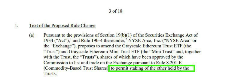 在过去三天里,Grayscale 和 21 Shares 已向美国证券交易委员会(SEC)提交申请,计划允许其以太坊 ETF 对所持的 ETH 进行质押。