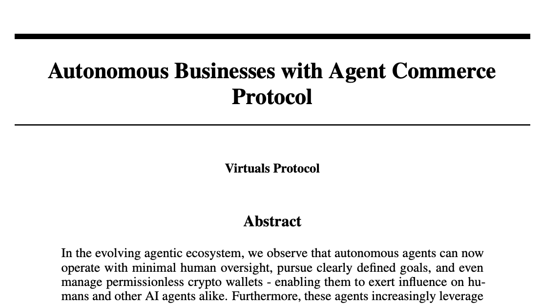 昨天,Virtuals 在其官推上发布了一个名为 Agent Commerce Protocol (下称 ACP)的新协议,直译过来即“AI 代理商业协议”。