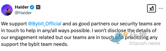 面对此次事件,多位行业参与者都表达了对 Bybit 的支持。