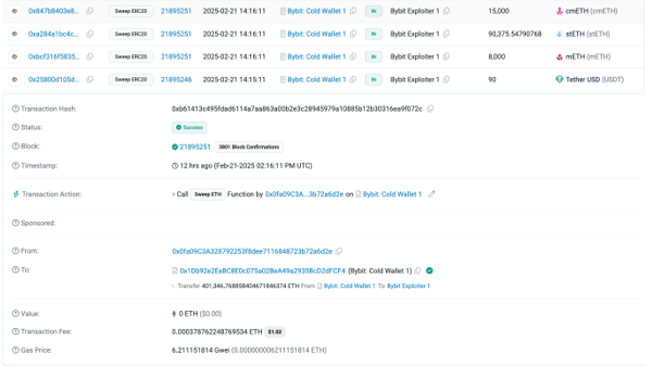 北京时间2025年2月21日晚,Bybit交易所遭受APT攻击,伪造“盲签”突破多签机制,导致冷钱包的资产被盗取近15亿美元。截止到22日早上8时(北京时间)被盗资产分布在51个地址上。