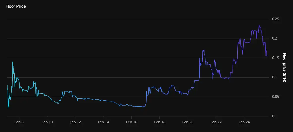 从去年年中开始,NFT 逐渐脱离了「古典价值标准」,图片内容、社区以及传统的品牌构建叙事等用于评判传统 PFP 类 NFT 的价值要素已经基本失灵。这个趋势,一直到去年底和今年初达到了顶峰,有 Kaito 这样涨到 10+ ETH 的,有 Stargaze 上几个 Cosmos 生态猛涨的项目,也有 MegaETH 这种引起了巨大市场争议的。
