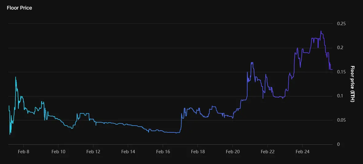 从去年年中开始,NFT 逐渐脱离了「古典价值标准」,图片内容、社区以及传统的品牌构建叙事等用于评判传统 PFP 类 NFT 的价值要素已经基本失灵。这个趋势,一直到去年底和今年初达到了顶峰,有 Kaito 这样涨到 10+ ETH 的,有 Stargaze 上几个 Cosmos 生态猛涨的项目,也有 MegaETH 这种引起了巨大市场争议的。