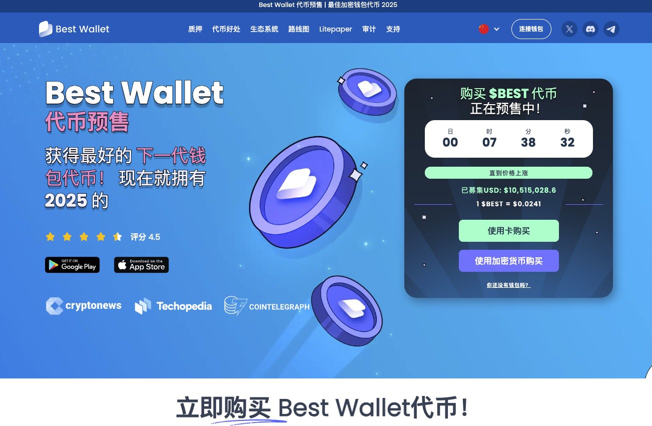 Best Wallet实用型代币$BEST在2025年加密市场中异军突起。这款专为多链操作设计加密钱包,不仅支援超过50条主流区块链,还提供多项创新功能,使其成为投资者理想工具。$BEST在预售阶段已筹集1000万美元,吸引了超过100万用户关注。