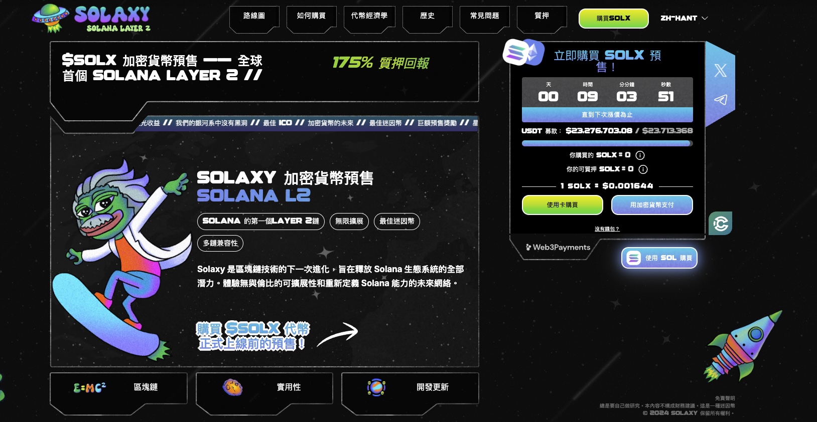 $SOLX仍在预售阶段,在预售结束后再上市DEX及CEX,建议投资者可进入官方网站、X及Telegram了解预售最新资讯。