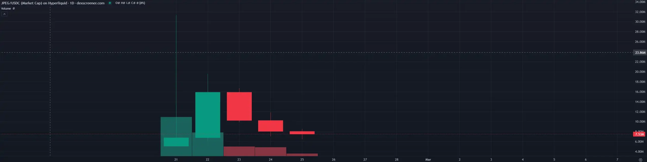 目前最受期待的 Hyperliquid NFT 交易市场应该是 Drip.Trade(@drip__trade),这个项目会在 2 月 27 日上线。虽然产品还没有上线,但是平台币 $JPEG 已经在几天前发出来了。最高点时市值接近 2000 万美元,目前市值大约为 750 万美元。