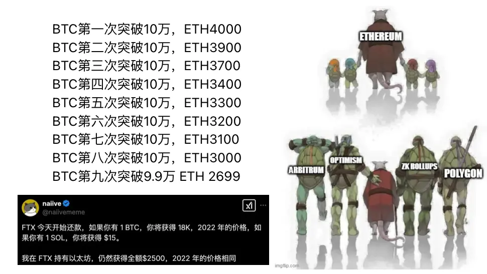 对于所有以太坊团队和社区来说,2024 年都是艰难的一年。社区的不满情绪陷入了周期性的愤怒循环,时不时就会爆发一次,社区嘲讽 ETH 价格的梗图也更新了一波又一波。