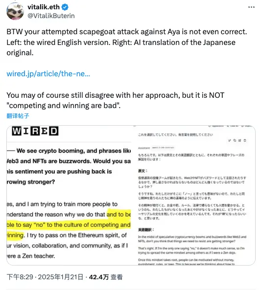 所以当社区对 Aya 恶语相向的时候,Vitalik 如此破防,因为被骂得不只是 Aya,更是 Vitalik 自己。