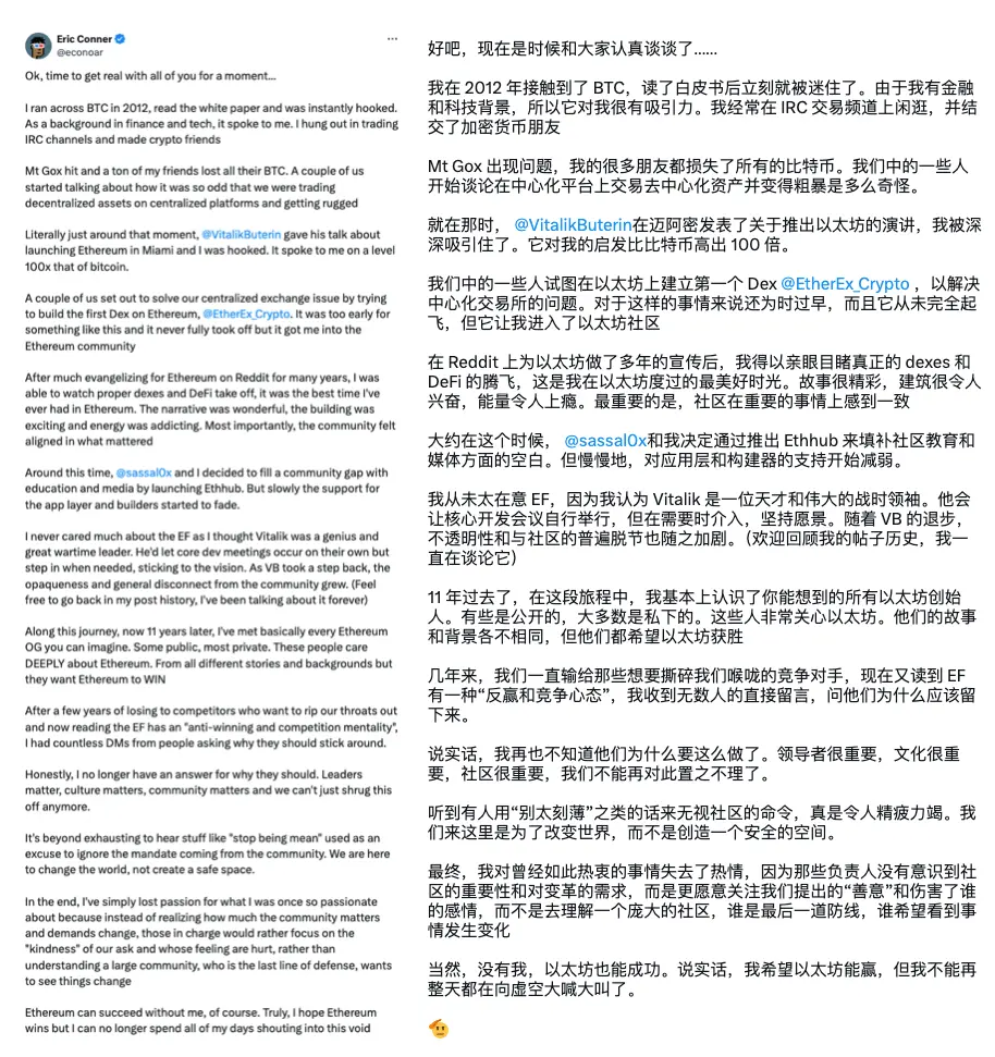 如果大家还记得过年那段时间 Vitalik 各种破防的推特,比如抄送 Milady 的抽象用语,甚至想过离开以太坊等「精神状态良好」的发言的时期,正是那段时间,Vitalik 受到了社区给予的极大的舆论压力。