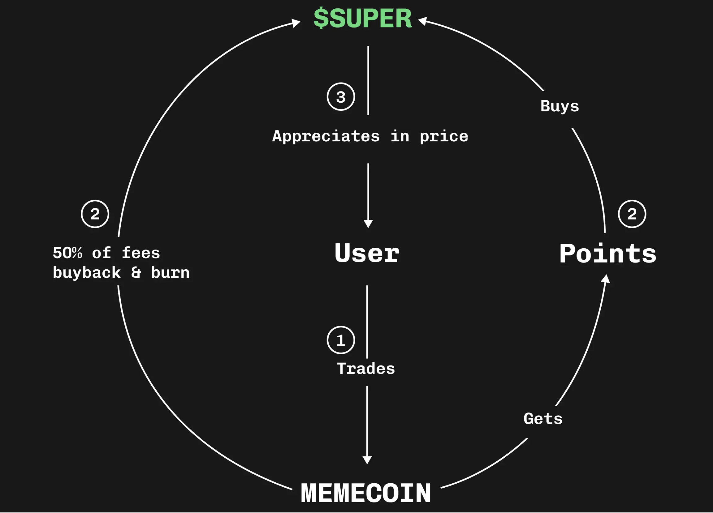 用户积累的积分可用于以 固定价格 购买平台代币 $SUPER,兑换比例为 1:1,官方会用交易手续费的 50% 用以回购 $SUPER 并燃烧销毁。