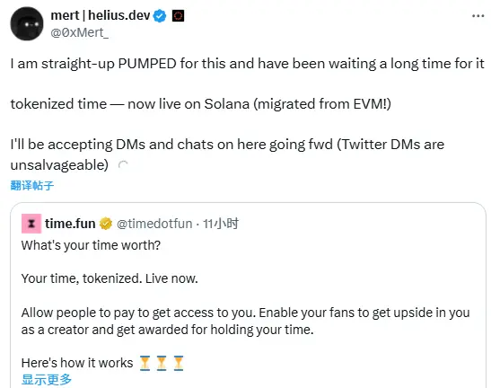 同样,Solana 生态的重要成员 Mert Mumtaz ( @0xMert_ )同样对 Time.fun 表示认可,并在 Time.fun 自己的代币 $mert。