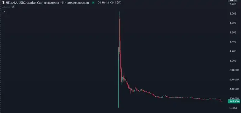 看到提款如此轻松后,特朗普的妻子推出了 MELANIA meme 币,这次比 TRUMP 还要糟糕。投资者在前 12 小时内损失了超过 90%,而团队提取了超过 5 亿美元。