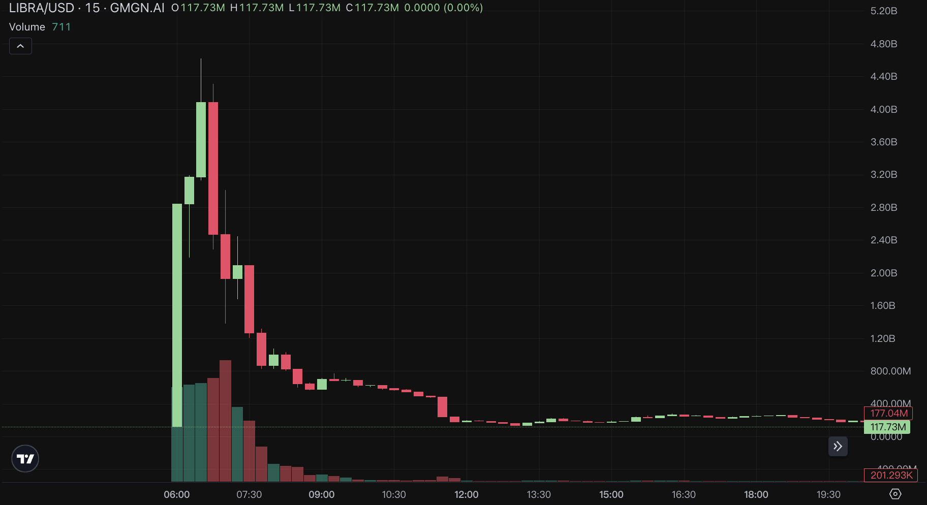 而由于项目方在早期控制了绝大部分 LIBRA 流通代币,他们无需像 Uniswap 等平台那样提供真实的稳定币或 ETH 作为对手盘。项目方只需将自己的 LIBRA 代币按照不同价位挂出买单,由于市场上几乎没有流通的卖单,这些买单会被不断成交,进一步推高价格,制造虚假繁荣。