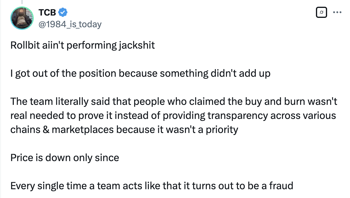 代币价格不断下跌,社区成员质疑 Rollbit 团队没有在不同的链和市场上提供透明度