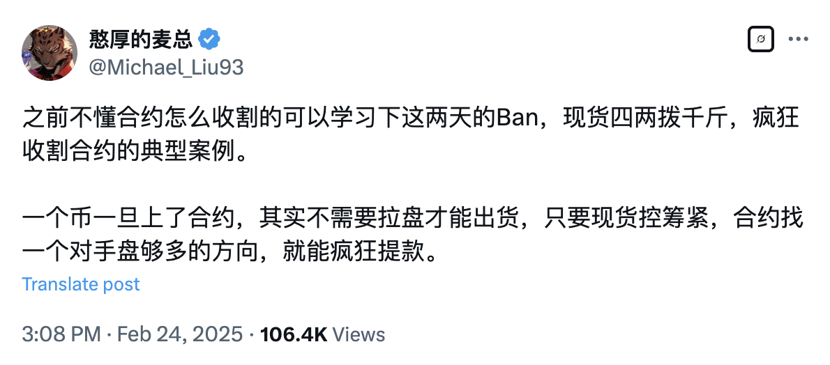 随后,做市商开始着手准备拉升和出货。在此之前他们会尽可能地控制现货筹码,减少流通量,确保卖盘无法对价格造成实质性冲击,同时也限制了做空者借币的可能性。在现货筹码被牢牢控制的情况下,做市商可以利用相对较少的资金拉升价格,甚至引发轧空行情,当用户选择跟着一起现货买入、合约开多时,就为项目方 / 做市商 / 机构大户积攒了足够多的买方,可以分批出货开始再一次收割。