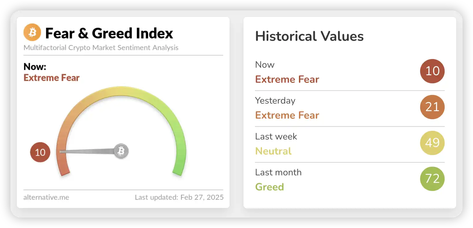 而根据 Alternative 数据,今日加密货币恐慌与贪婪指数降至 10 (昨日为 25),市场情绪已由中性转为极度恐惧,创自 2022 年 7 月以来的新低。近期市场,比特币已多次短时急跌,以下是 BlockBeats 整理的比特币为何下跌的市场原因,仅供读者参考。