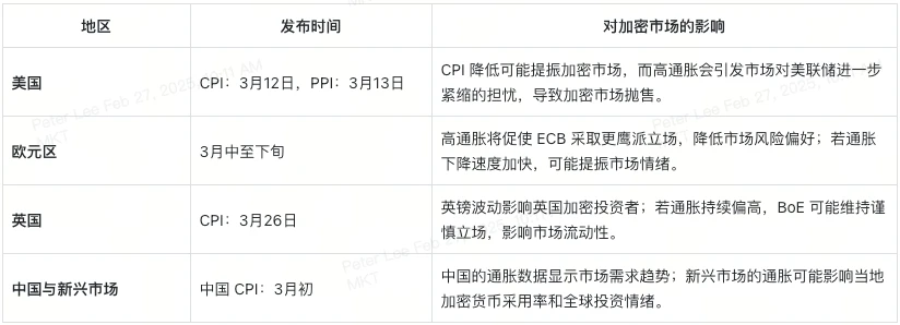 中国的通胀数据反映市场需求情况,而新兴市场(如土耳其、巴西等)的通胀趋势则影响当地加密货币的采用率以及全球投资情绪。
