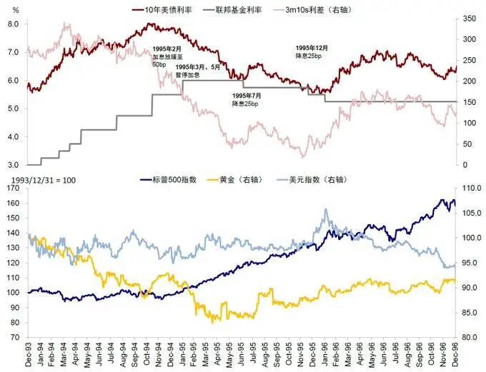回顾1990年以来的历史经验,美联储曾分别在1989年8月和1995年8月暂停降息,以评估后续增长情况决定降息速度和力度。比如1995年7月“预防式”降息后,美联储连续三次会议按兵不动,直到美国政府因新财年预算未能达成一致而两度关门,才决定于1995年12月再度降息25bp。