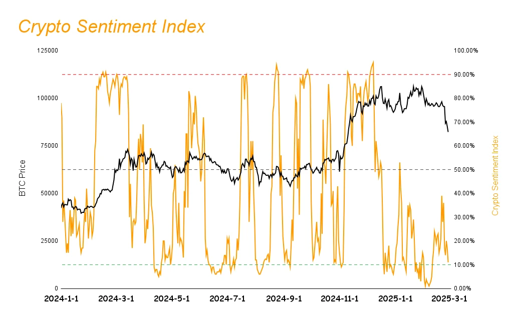 市场情绪指数由上周 33% 下降至 11% ,整体处于临近极度恐慌区间。