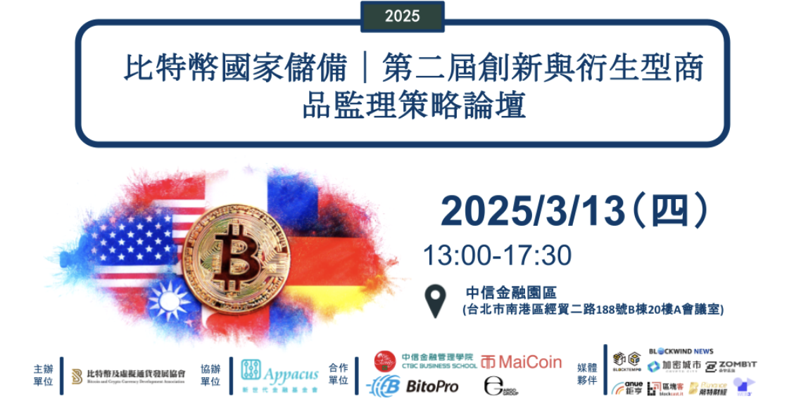 1.比特币国家储备!台湾也要?2025第二届”创新与衍生型商品监理策略论坛”