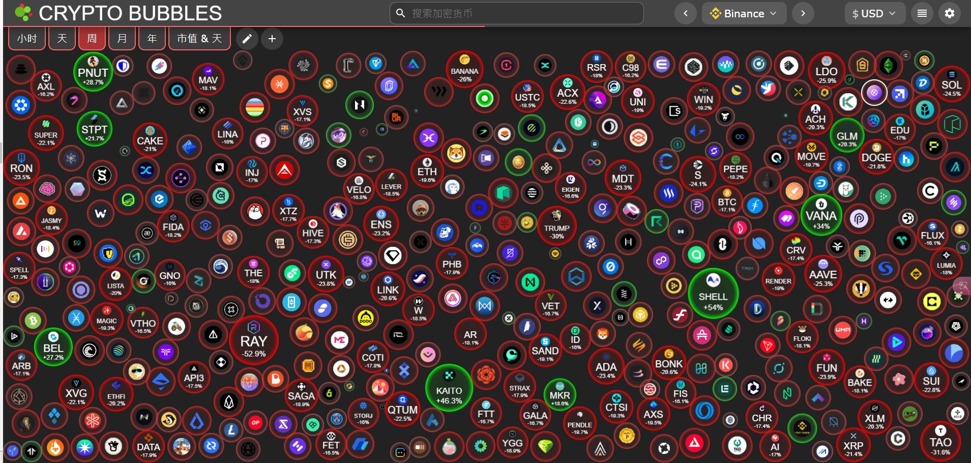 本周 加密市场 ,MyShell、KAITO、Vana 分别以 +54%、+46.3%、+34% 的涨幅领跑。