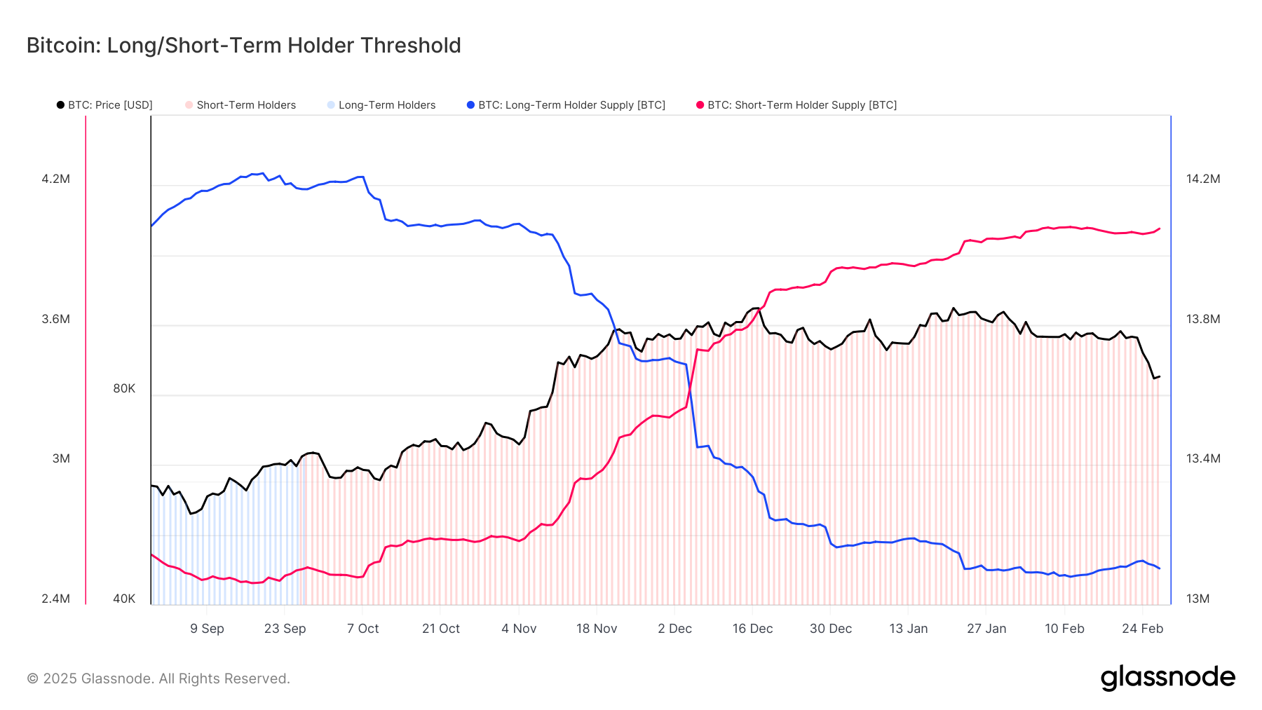 链上 数据 ,本周比特币长期持有者(LTH)的仓位出显著变化,特别是在 2 月 23 日至 24 日,长期持有者𫔭始回补仓位,出市场情绪的转变。与先前的抛售压力相比,长期持有者的卖压几乎消退,并未出现大规模的卖盘,反而出现了增持动能,这可能一个信号预示著市场未来的稳定性增强,并为比特币价格提供了潜在支撑。