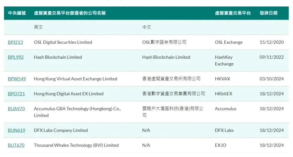 2024 年 10 月 4 日,香港证监会更新虚拟资产交易平台(VATP)名单,向香港虚拟资产交易所(HKVAX)发放第 1 类(证券交易)和第 7 类(自动化交易)牌照,符合《打击洗钱及恐怖分子资金筹集条例》要求。
