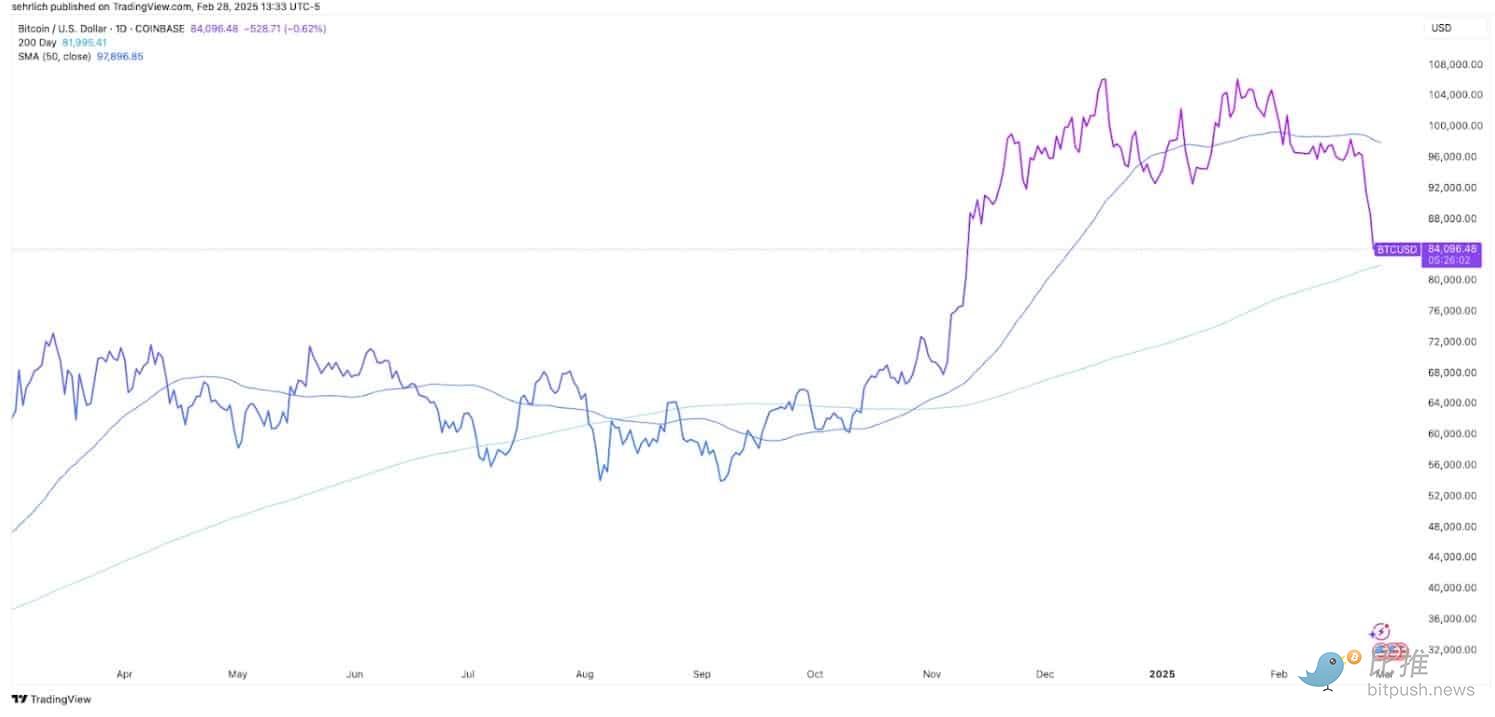 然而,这些举措都不足以阻止近期比特币价格的下跌以及加密行业整体的负面情绪。截至撰稿时,目前比特币价格为 84,000 美元,自唐纳德·特朗普就职以来已下跌 18%,较历史高点下跌近 23%,加密货币总市值已下跌 21%。