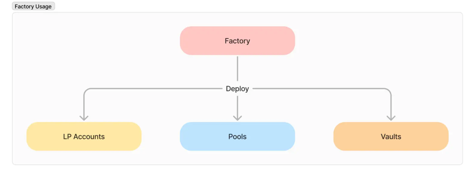 可以将 Factory 比作超市的店长,决定哪些结账台(Vaults)应该设置,哪些收银台(Pools)需要启动以处理折扣和兑换,并安排配送服务(LP Accounts)将所有购买的商品集中送到用户手中,从而确保交易更快速、更高效。