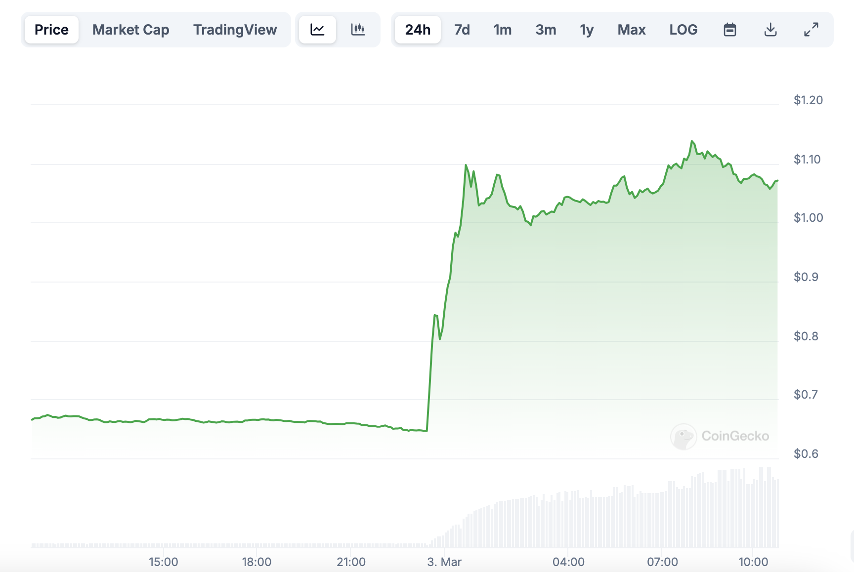 受此消息刺激,加密市场一夜之间“满血复活”。其中,Cardano的ADA表现尤为抢眼,CoinGecko数据显示,其24小时内最高涨幅超78.1%,直接霸榜热搜。然而,市场情绪高涨之余,也不乏质疑声:Cardano的技术实力和生态发展相比其他入选资产略显逊色,凭何被精选为美国储备资产?