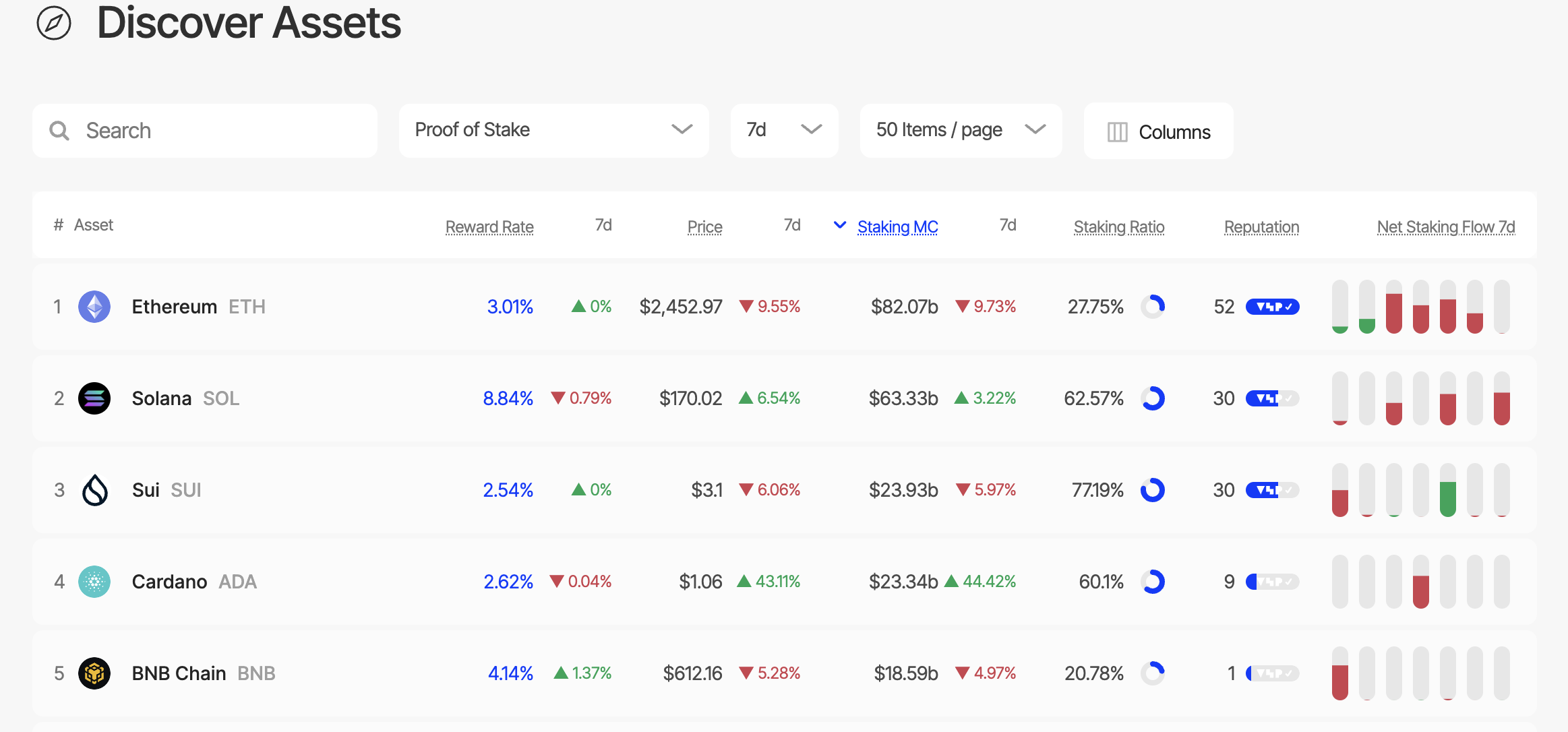 Cardano持有者拥有着较高的长期持有意愿,有超过六成选择锁仓支持网络,也增加了其网络健康度。根据质押数据网站Staking Rewards数据显示,Cardano是第四大的POS区块链网络,质押金额达233.4亿美元,质押率为60.1%。