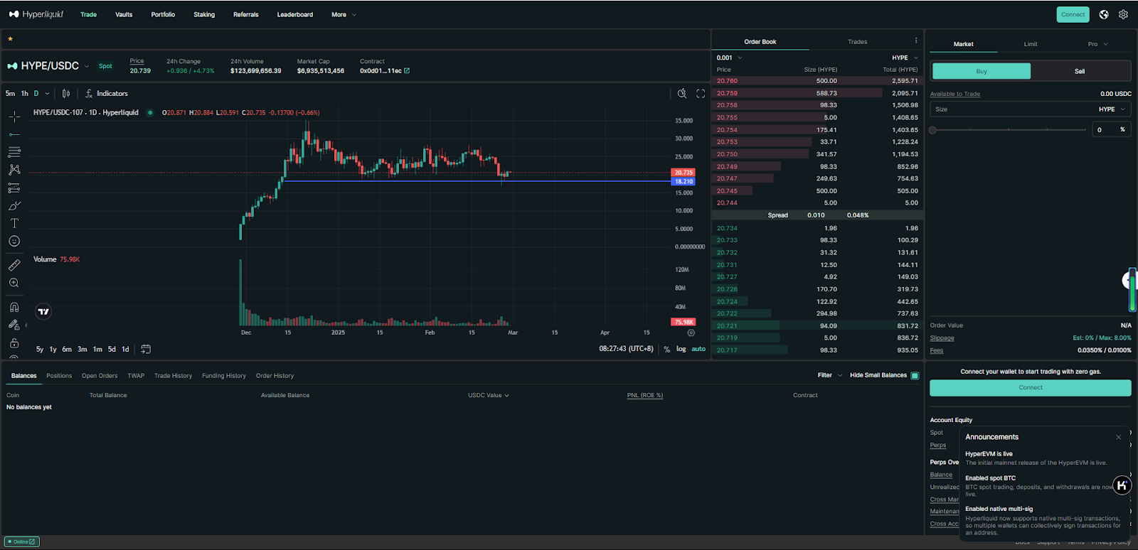 Hyperliquid 的原生代币 HYPE 于 2024 年 11 月通过空投推出,覆盖 94,000 个唯一地址。这一分配在第一天就推动了 20 亿美元的市值,表明社区采用率很高。