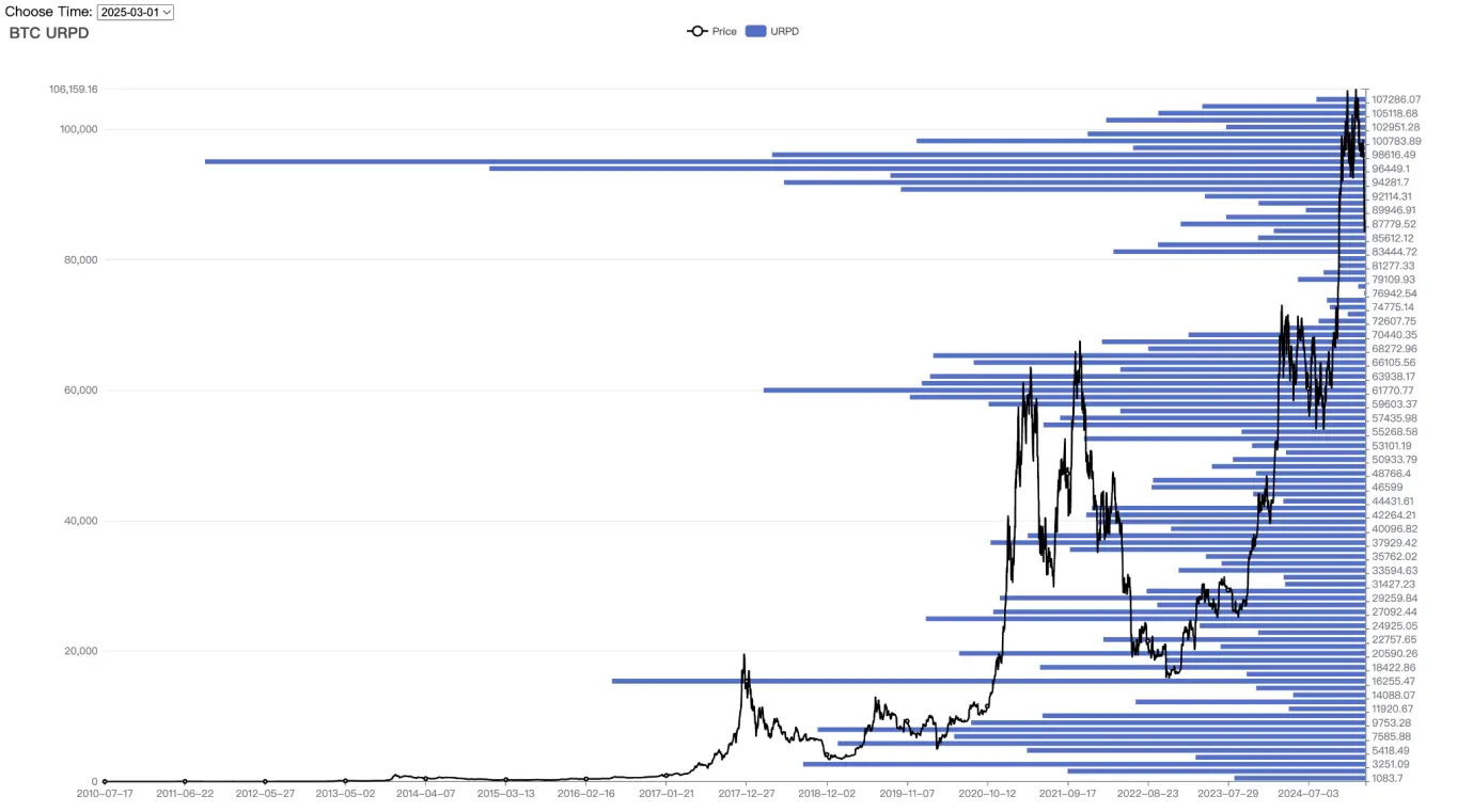 深入链上分析,我们发现2月24日以来在78000~89000美元期间分布的BTC增加了564920.06枚,而“特朗普底”区间(89000~110000美元)分布的BTC减少了412875.03枚。
