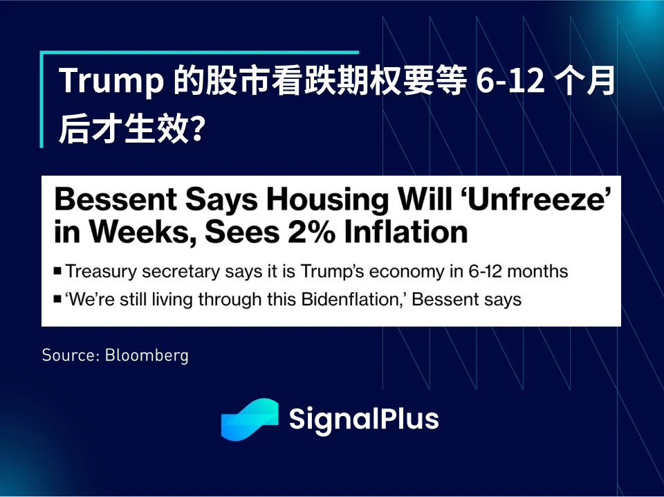 与此同时,财政部长 Bessent 似乎对当前经济放缓的问题毫不在意,并将经济压力归咎于“拜登通胀(Bidenflation)”及前一任政府的政策。更有意思的是,他明确表示,“ 6-12 个月后”才会是真正的“Trump 经济”,听起来政府并不急于应对当前的经济下行,也意味著股市的“Trump 看跌期权”可能要等到一年后才会开始发挥作用。