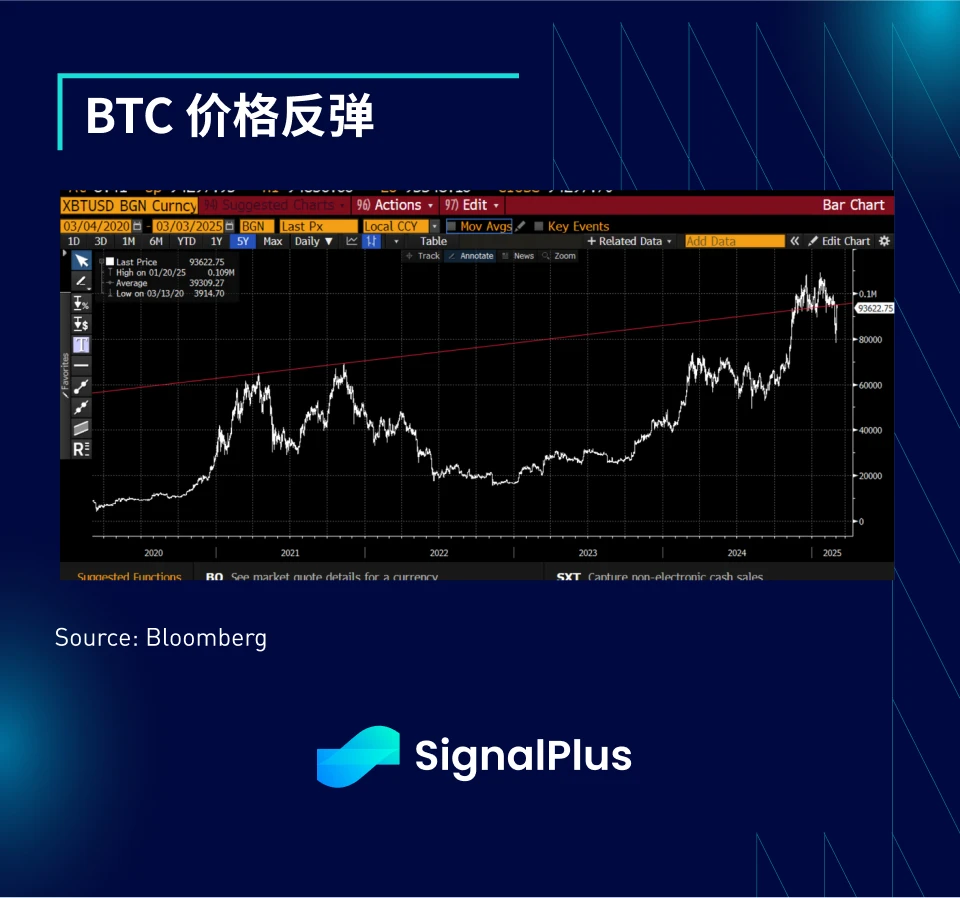 受到激励,币价大幅反弹,BTC 价格直线上涨,不过在 9.2 至 9.3 万附近受阻,正好对应长期趋势线阻力位置。如果政府正在学习美联储如何“操纵”资产市场——哦不,应该说“口头引导”市场走势——那么目前为止,他们在时机选择和技术层面的把控都堪称完美。这是否意味著我们正在见证加密货币市场的 “Trump 看跌期权(Trump Put)”逐步成形?