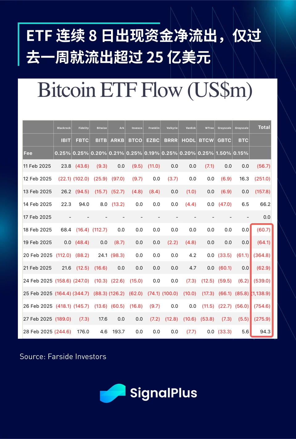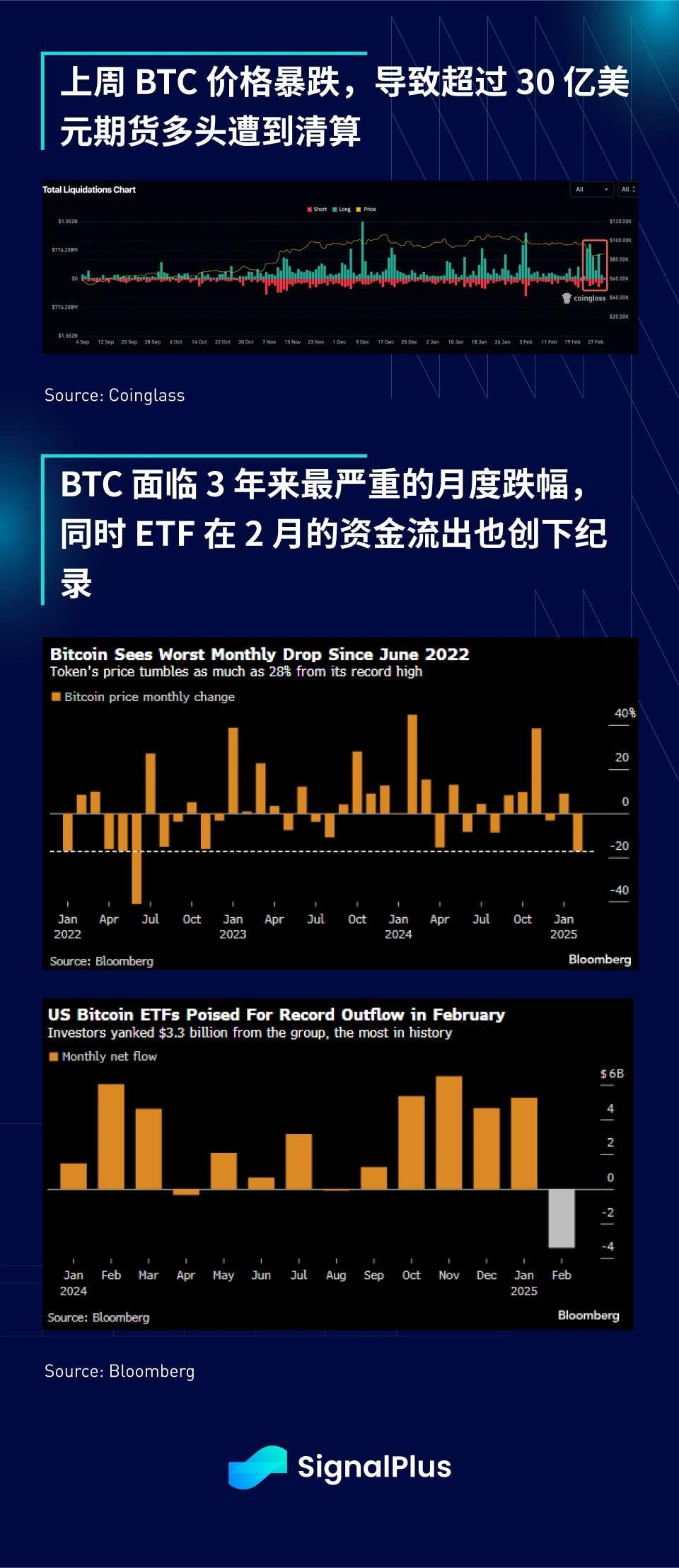 市场环境信息纷杂,真不知该从何说起。首先是加密货币,BTC 价格上周直线下跌至 7.8 万美元,据 Coinglass 报导,有超过 30 亿美元的期货多头遭到清算,BTC 准备迎来 2022 年 6 月以来最差的单月表现,同时 ETF 也出现史上最大的单月资金流出(仅上周就流出 $ 25 亿美元)。