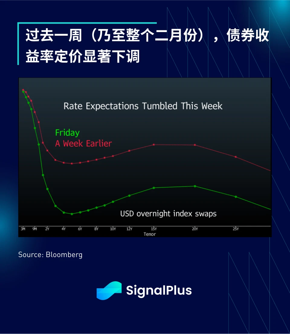 债券收益率显著下滑,对于今年首次降息的预期已从年底提前至初夏。