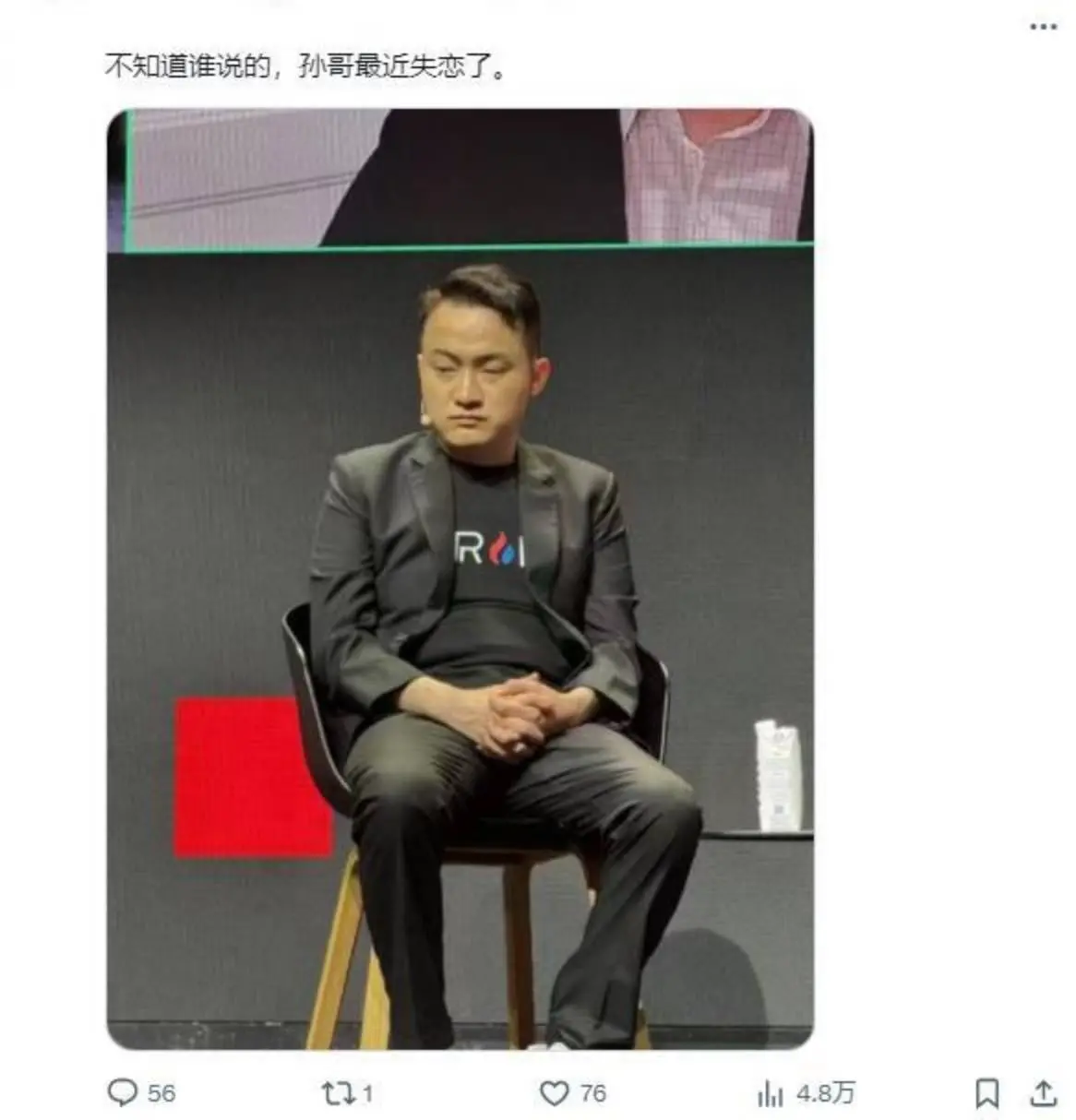 香港共识大会期间,一张孙宇晨疲态尽显的照片在社区广泛流传。有人暗自揣摩:“不知道谁说的,孙哥最近失恋了”。也有人戏谑:“一看这表情就是以太坊爆仓了”。毫无根据的猜测四散蔓延,成了市场情绪的投影。但据知情者透露,孙哥在参会前就已身体不适,在演讲上台前还身着羽绒服。且为了不辜负用户的支持与信任,仍接连参与几场活动,持续输出真知灼见。