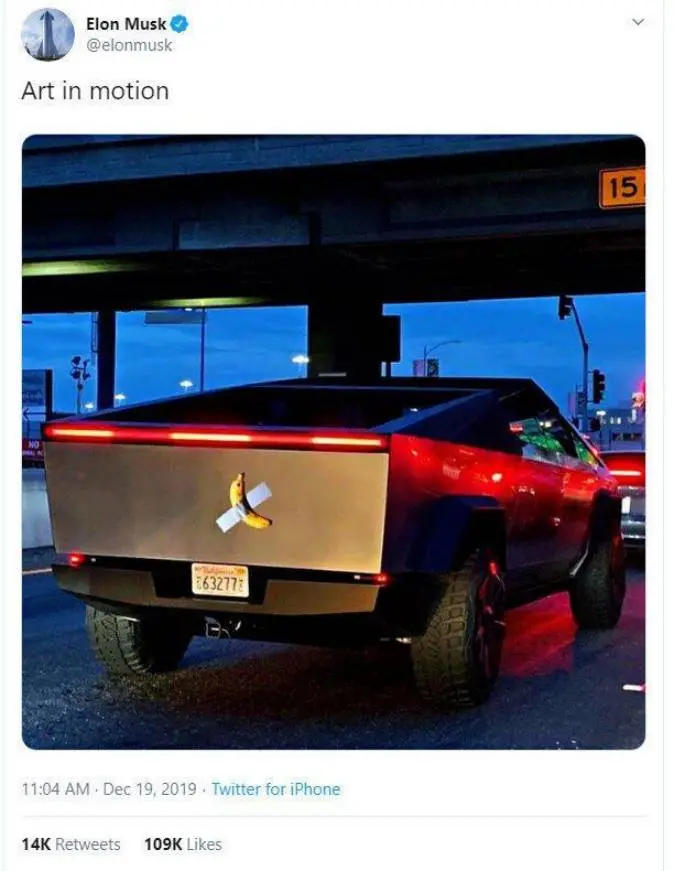2019年,彼时命名为“喜剧演员”的香蕉在苏富比以12万美元出售,并在社交媒体引发热议。就连马斯克当时也在玩这个香蕉的梗: