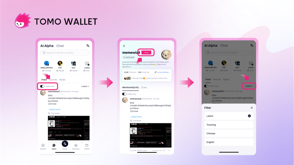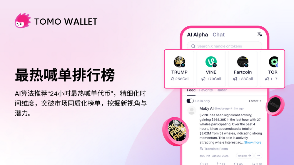 Tomo钱包推出AI Alpha功能,一键追踪推特币种情报
