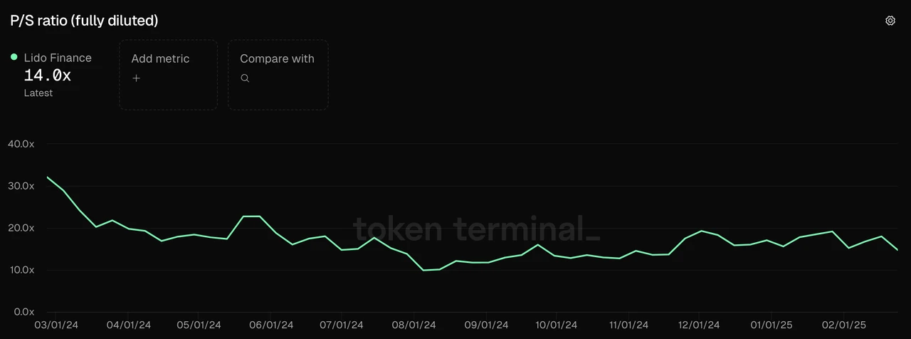 最近一年时间,LDO 的 PS 处于历史低位区间,尤其是最近半年,其 PS 一直低于 20 。