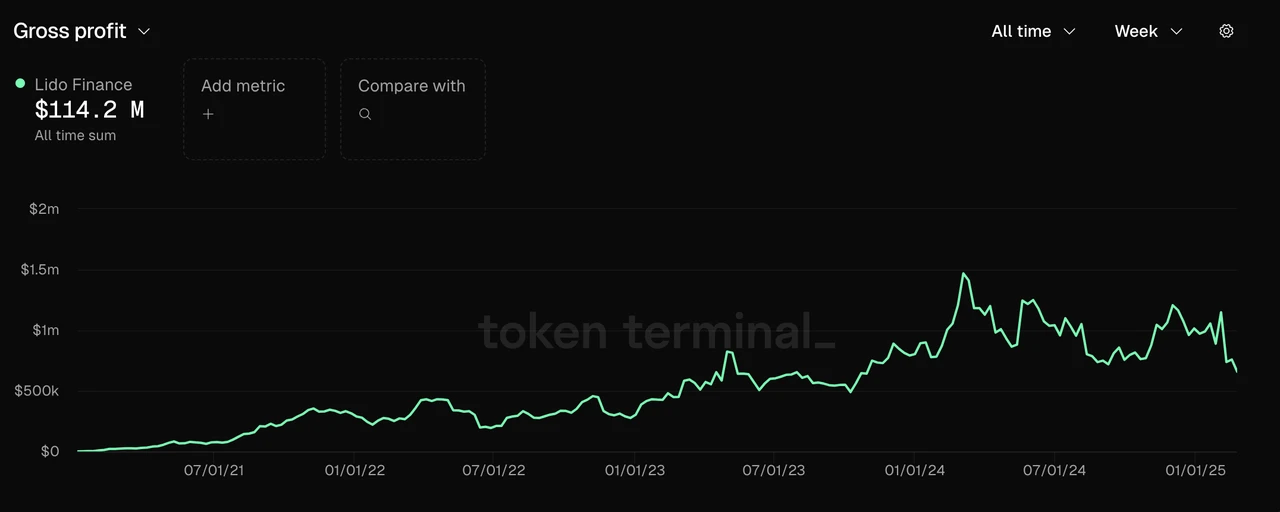 另外值得指出的是,在今年内,协议收入存在转变为$LDO 收入的可能性。从 2024 年开始,社区内多次提议要将协议收入(5% 分给 DAO 的部分)分配给 $LDO 持有人,不过核心团队从审慎角度出发明确反对,多次治理流程投票也未通过。不过随着监管环境的大幅度宽松,以及协议从 2024 年开始正式产生会计意义上的“利润”(协议收入扣除包括团队工资在内的全部开支,仍然有盈余),核心团队也在 2025 年的目标中正式讨论“ 将协议收入与 LDO 直接挂钩 ”,在 2025 年我们有望看到$LDO 开始获取协议的质押收入。