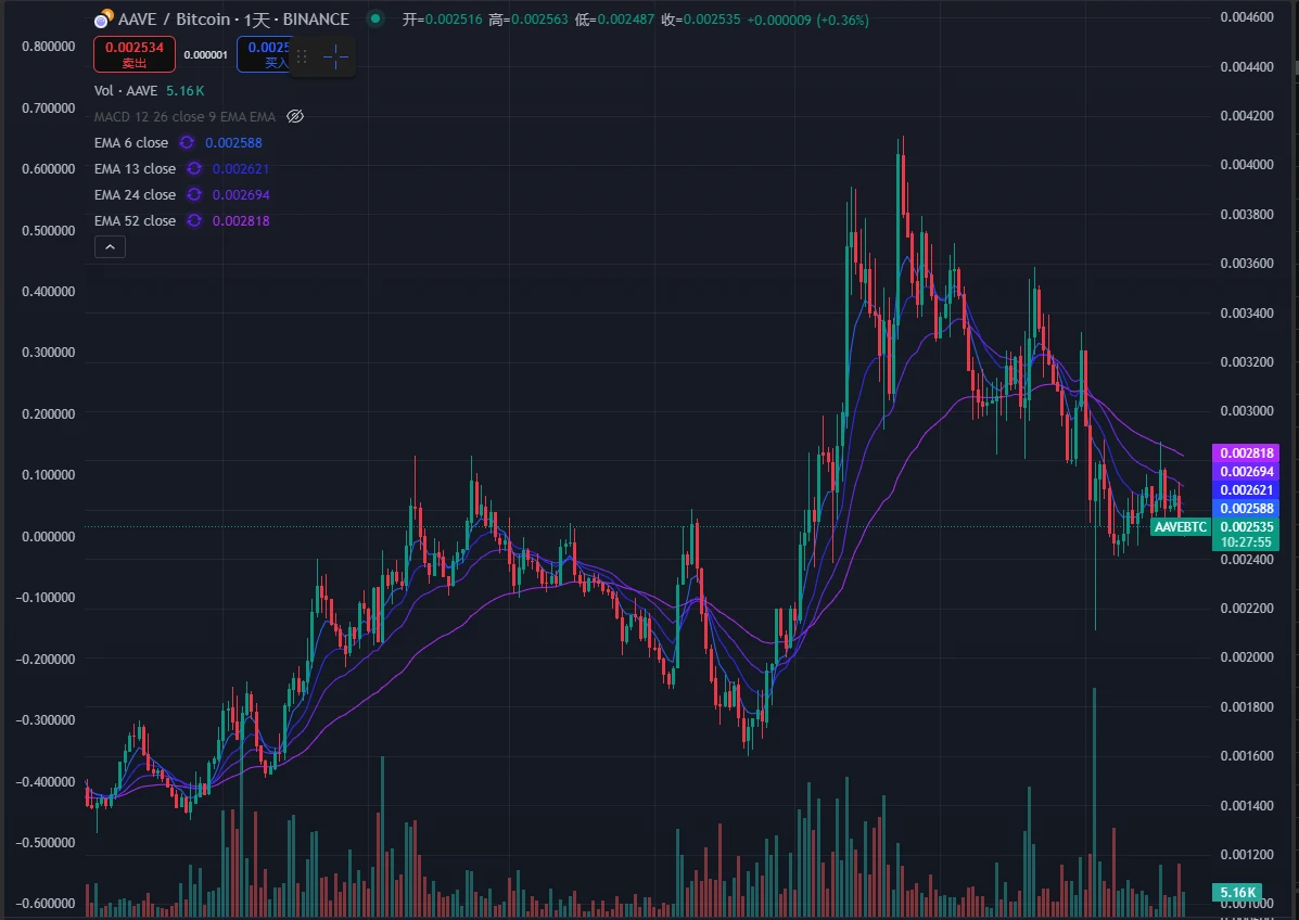 也正是从去年 7 月初开始,Aave 相对于 BTC 的最高涨幅超过 215% ,对 ETH 最高涨幅 354% 。即使是目前价格大幅回落后,Aave 相对于 BTC 涨幅也有 77% ,对 ETH 涨幅为 251% 。