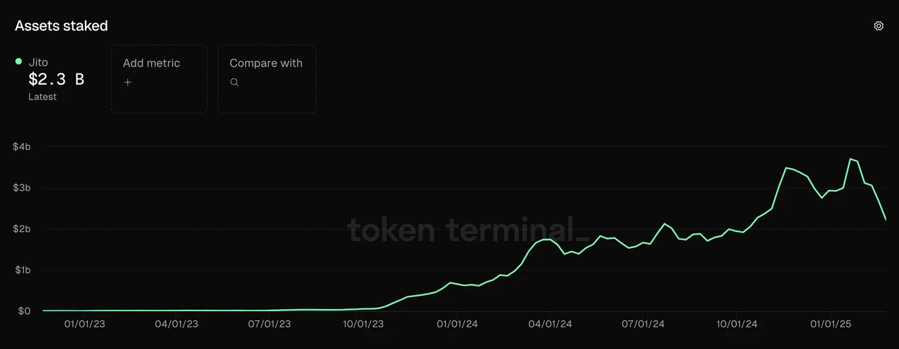 目前,Jito 质押资产规模(流动性质押)超过 25 亿美金