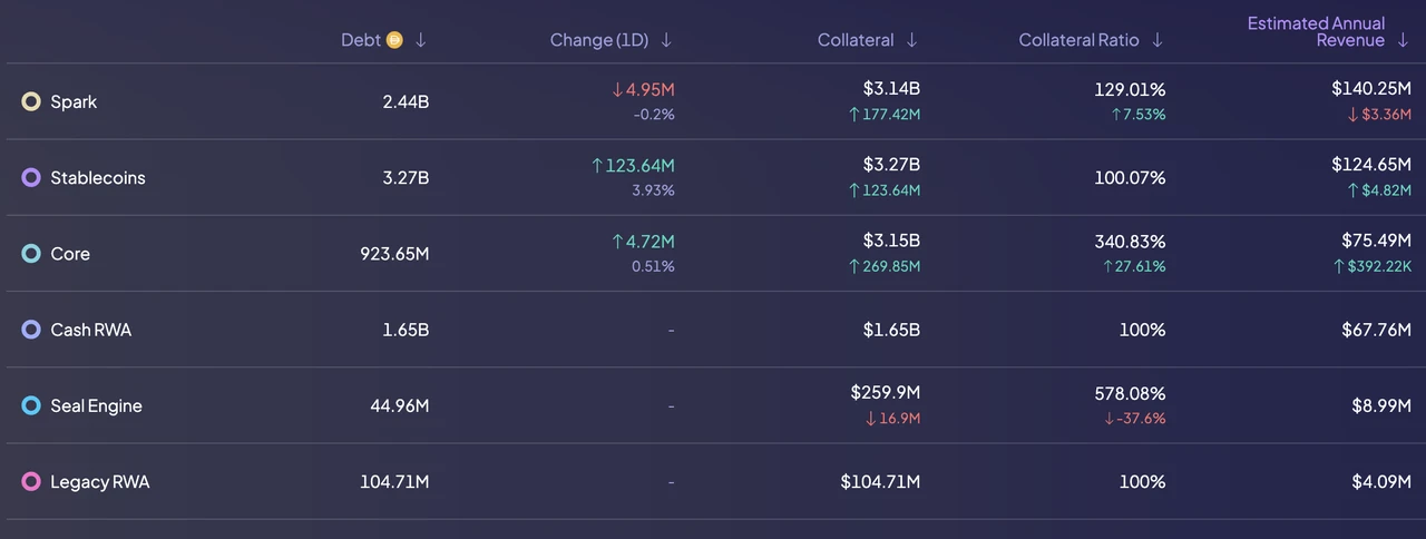 MakerDAO 的负债构成及年收入 来源: sky 官网