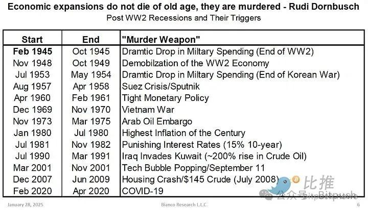 让我们用最近的经济史来检验这条定律(感谢 Bianco Research 提供的这份出色的表格)。
