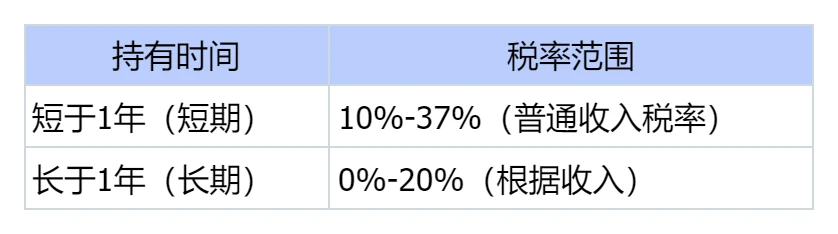 先说说现在的情况,据 Coinbase 税制指南 ,在美国,加密货币不是“货币”,IRS(美国国税局)将加密货币定义为“财产”看。你要是买了比特币,涨了价卖出去,那赚的钱就得交资本利得税。税率也取决于你持币的时间: