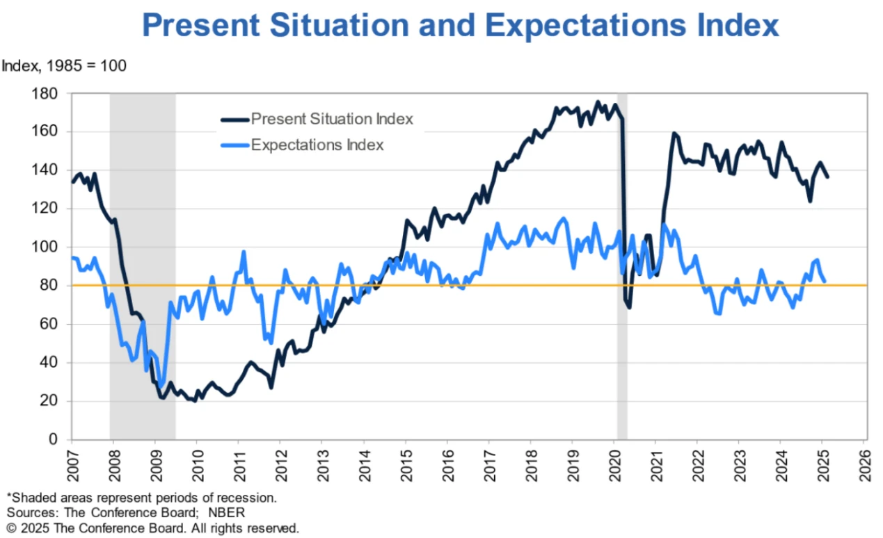 经济裂痕:消费者信心指数暴跌、就业市场降温,叠加特朗普关税威胁,市场对“硬着陆”担忧加剧。