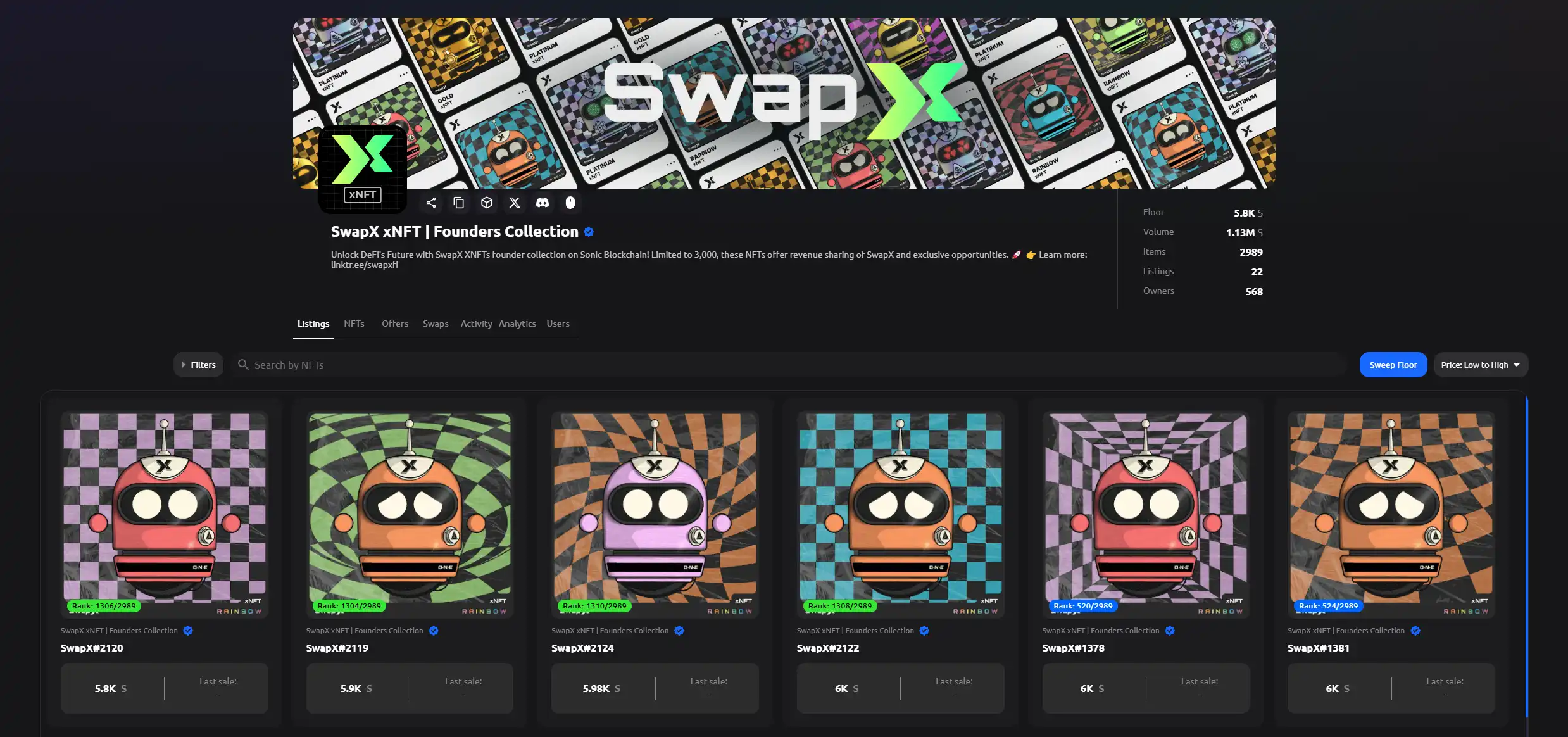 Sonic 上的 DEX 推出的 NFT 系列,总量 2989 ,目前地板价是 5800 $S,大约是 3300 美元。