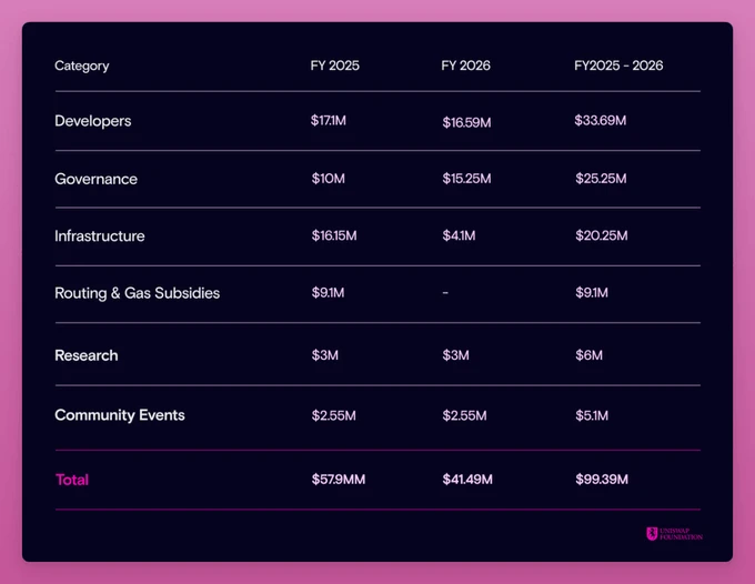 为促进增长,Uniswap 基金会提议分配 1.655 亿美元资金至以下方面: